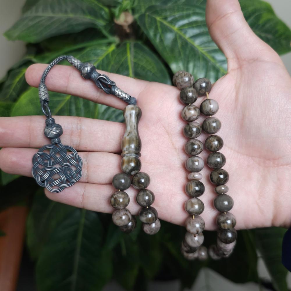 سبحة سندلوس رصاصي مموج طربزونة فضة